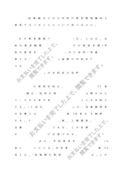 教育課程論(幼稚園または小学校の教育課程編成上留意するべきことについて)