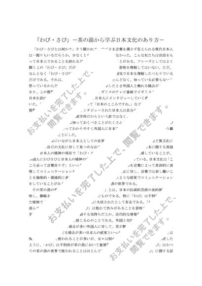 「わび・さび」-茶の湯から学ぶ日本文化のあり方ー