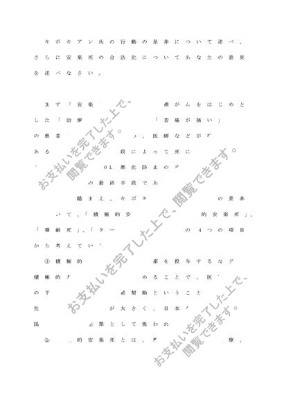 キボキアン氏の行動の是非について述べ、さらに安楽死の合法化についてあなたの意見を述べなさい。
