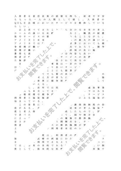 日本とアメリカの老人ホームの特色や相違点について概説し、わが国の老人福祉施設をめぐる今日的課題について