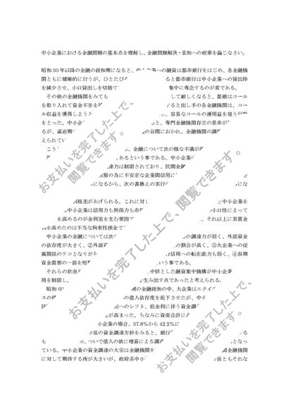 中小企業論 分冊2 中小企業経営における金融問題の基本点を整理し、金融問題・緩和への政策を論じなさい。