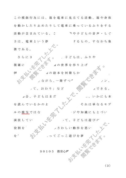 教育心理『象徴機能の発生について説明せよ(説明には子どもの行動についての具体的研究例も提示する)。また、教育との関連で大切な点を説明しなさい。』