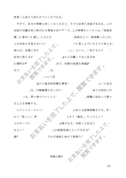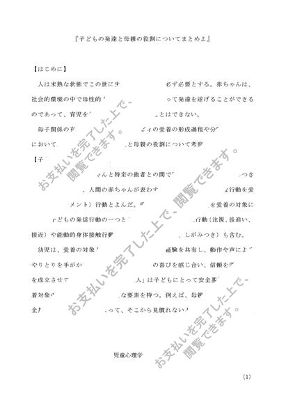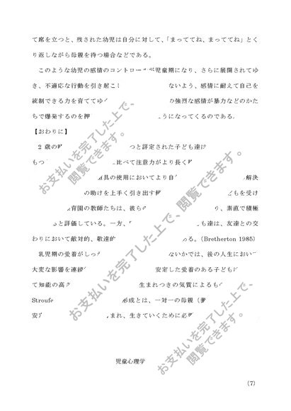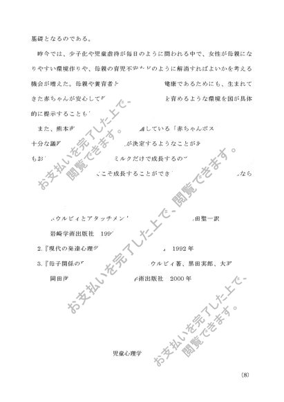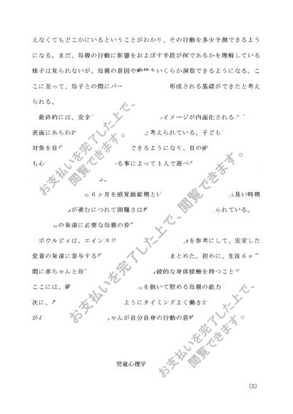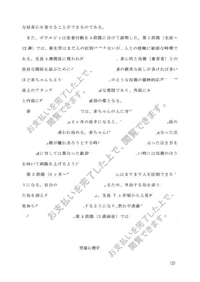 児童心理学 第2設題 子どもの発達と母親の役割についてまとめよ