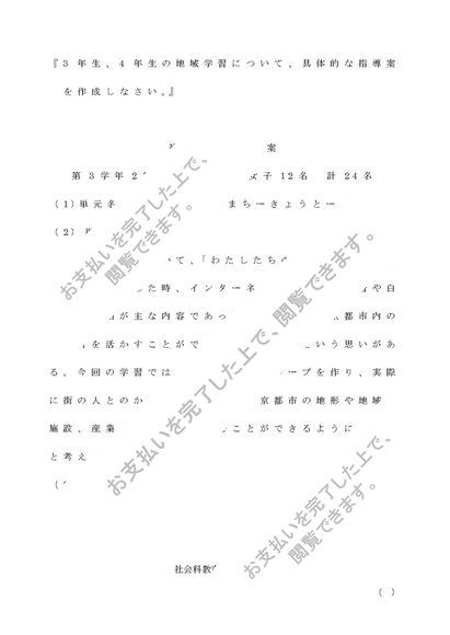社会科教育法 3年生、4年生の地域学習について、具体的な指導案を作成しなさい