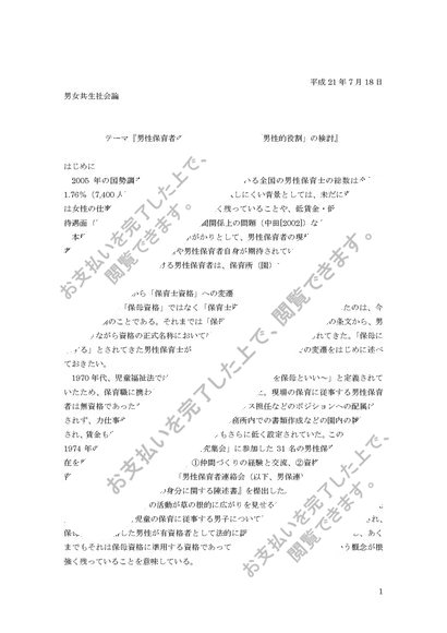 男女共生社会論 男性保育者の現状と彼らが抱える「男性的役割」の検討
