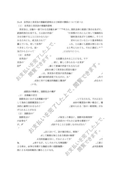 法学 ①自然法と実定法の規範的意味および両者の関係について②国際法の特徴③行政法の基本原理④共同企業、特に会社企業の形態について