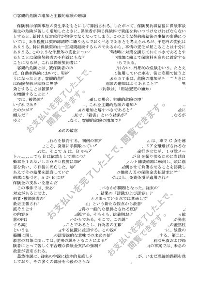 保険法「客観的危険の増加と主観的危険の増加」「故意による事故招致と未必の故意」「損害保険の本質」
