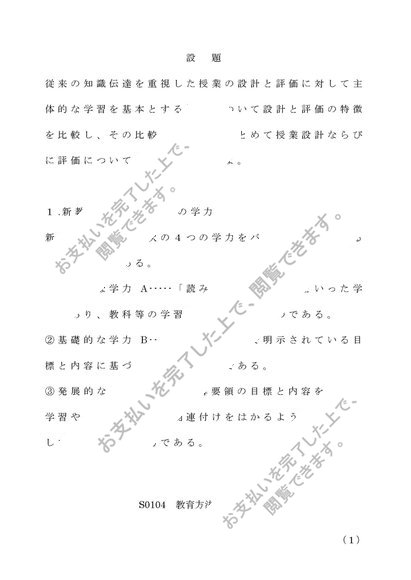 S0104教育方法学_第1設題 合格済レポート