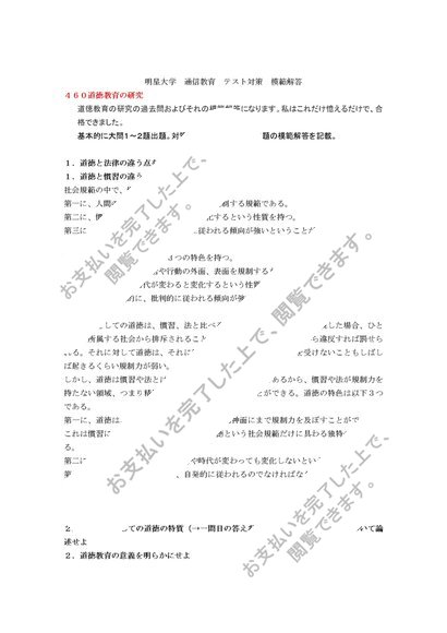 460 道徳教育の研究 テスト模範解答