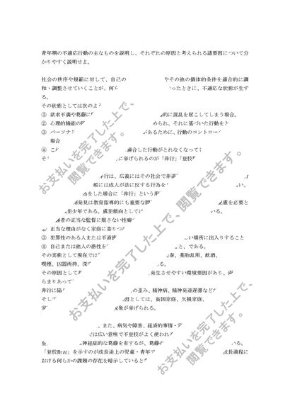 青年期の不適応行動の主なものを説明し、それぞれの原因と考えられる諸要因について分かりやすく説明せよ(科目試験用)