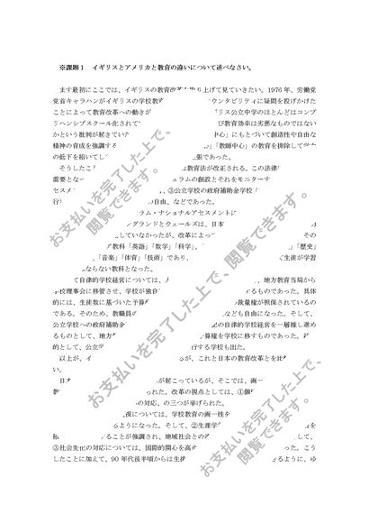 イギリス・アメリカ・中国からひとつ選び、日本の教育改革と比較し、それぞれの特徴を整理せよ。