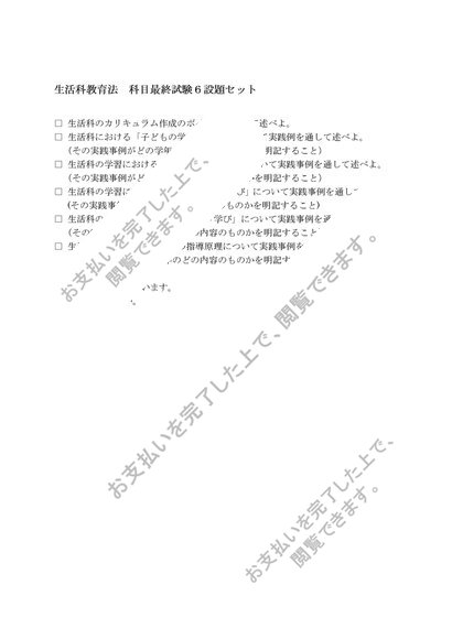 生活科教育法 科目最終試験対策 6設題セット