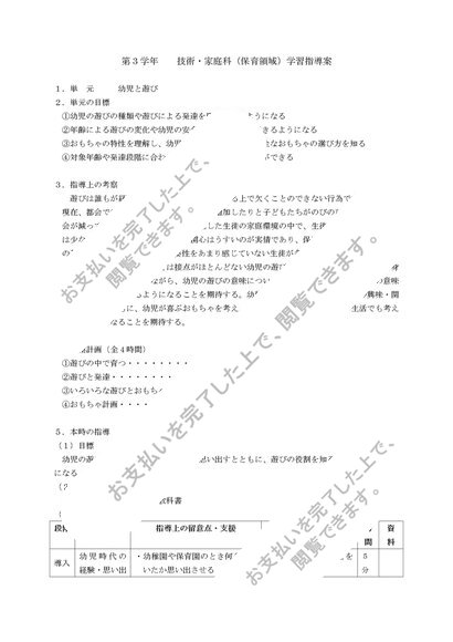 中学校家庭科指導案 単元:遊びの中で育つ