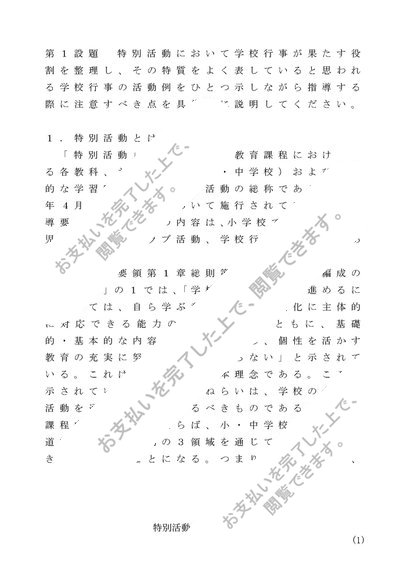 特別活動研究 第1設題