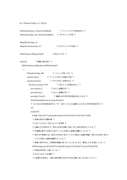 X-Windowプログラミング 斜方投射シミュレーション