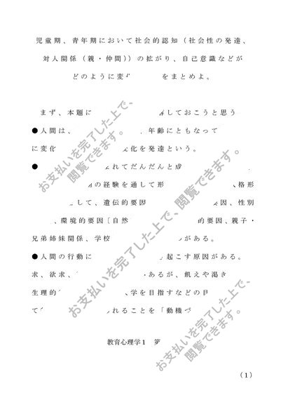 Z1103 教育心理学1 A判定 (佛教大学リポート)