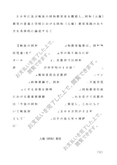 P6703 人権(同和)教育 合格済み (佛教大学リポート)