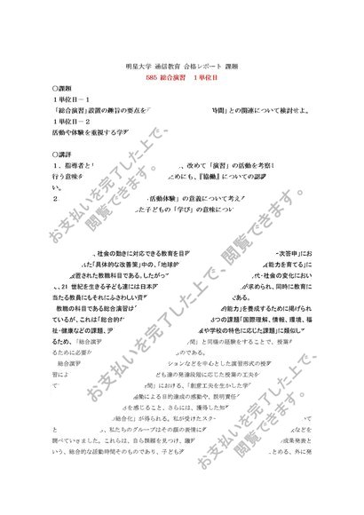 585 総合演習 1単位目 明星大学 通信教育 合格レポート