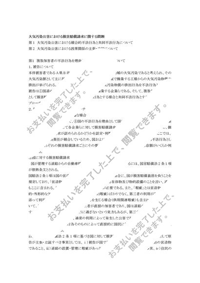 大気汚染公害における損害賠償請求に関する問題(不法行為法)