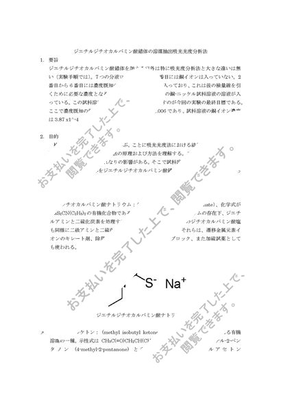 2-2ジエチルジチオカルバミン酸錯体の溶媒抽出吸光光度分析法(検量線を用いる吸光度光度法の習得)