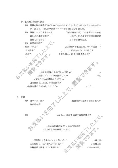 1-2酸化還元滴定(銅(II)イオン(でヨウ化物イオンを酸化)これをチオ硫酸ナトリウムで滴定)