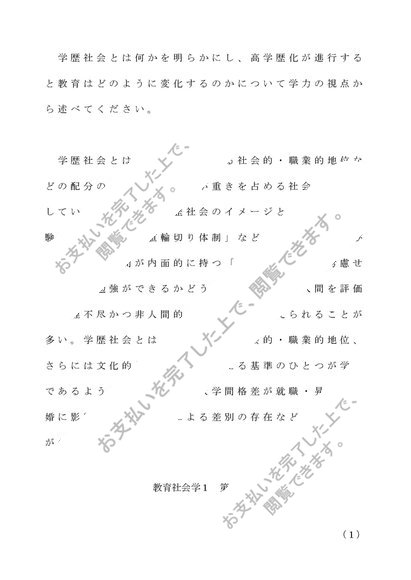 Z1104 教育社会学1 A判定 (佛教大学リポート)