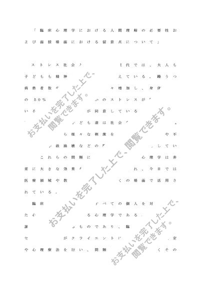 「臨床心理学における人間理解の必要性および面接場面における留意点について」 評価A