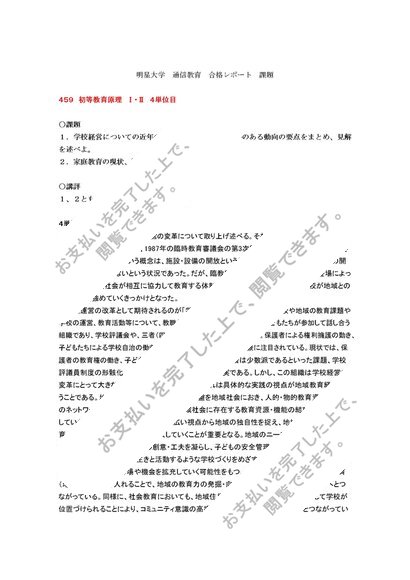 459 初等教育原理Ⅰ・Ⅱレポート 4単位目