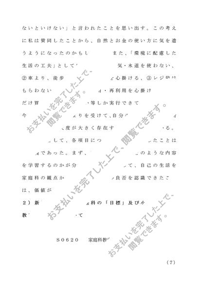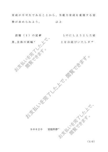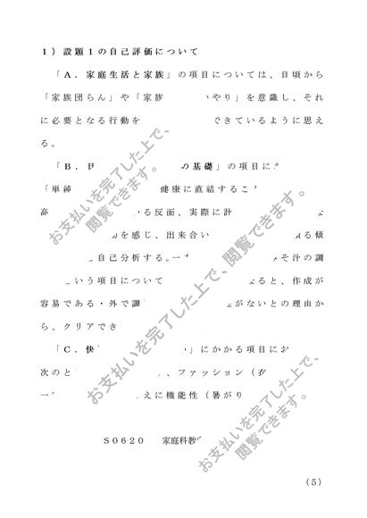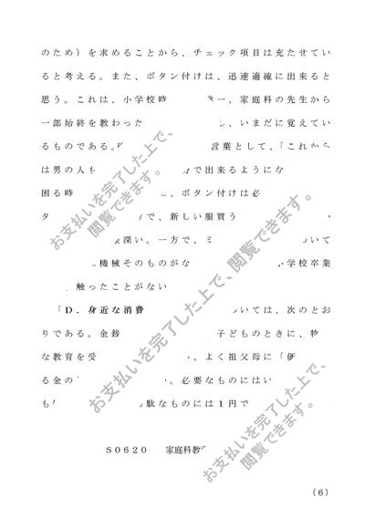 S0620 家庭科教育法レポート B評価