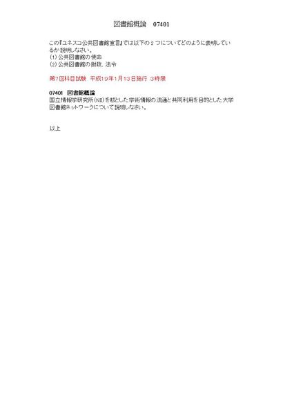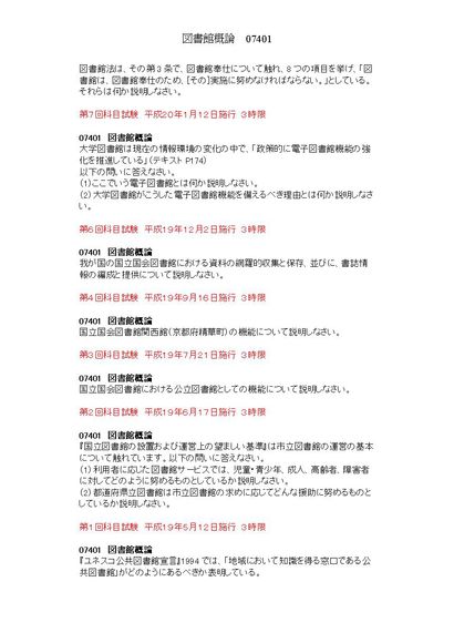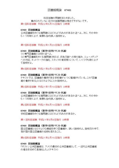3限 図書館概論 07401 科目試験集