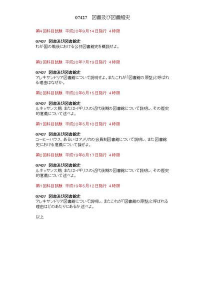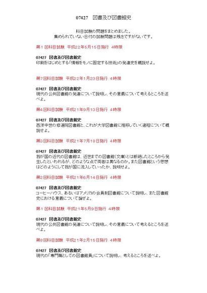 4限 図書及び図書館史 07427 科目試験集