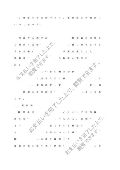 心理学の研究法のうち、観察法と実験法について述べよ。
