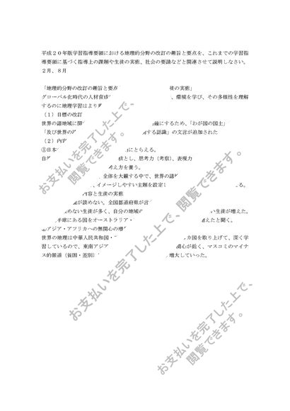 平成20年版学習指導要領における地理的分野の改訂の趣旨と要点を、これまでの学習指導要領に基づく指導上の課題や生徒の実態、社会の要請などと関連させて説明しなさい