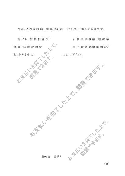 佛教大学通信教育部 哲学概論R0512 レポート第2設題 A判定