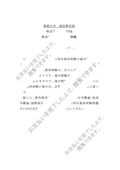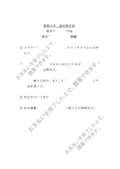 佛教大学 通信教育部 科目最終試験 過去問題 R0712社会学概論