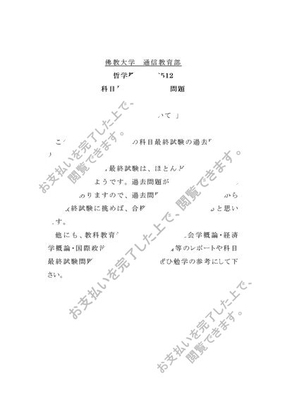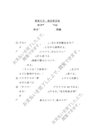 佛教大学 通信教育部 科目最終試験 過去問題 R0512哲学概論