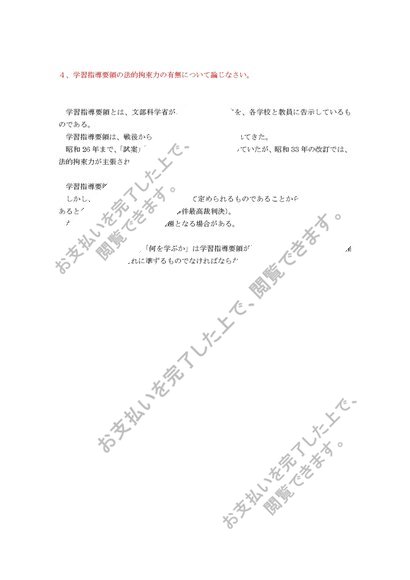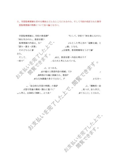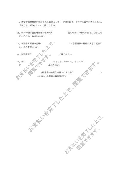 S0527 学校教育課程論 科目最終試験 参考答案6題セット