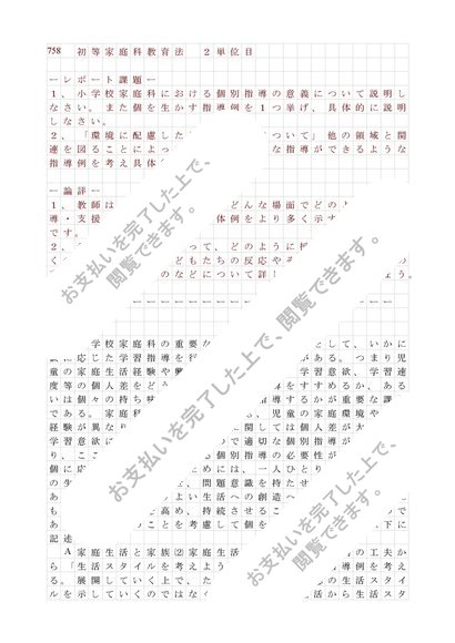 758 初等家庭科教育法 2単位目 合格レポート