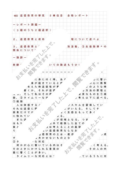 460道徳教育の研究 2単位目 合格レポート