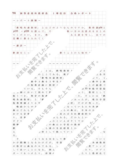751 初等音楽科教育法 1単位目 合格レポート