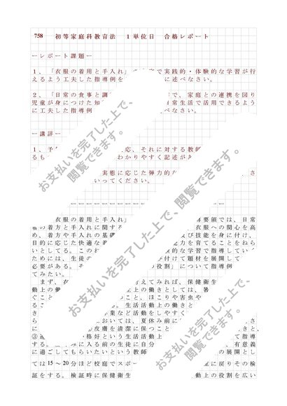 758 初等家庭科教育法 1単位目 合格レポート