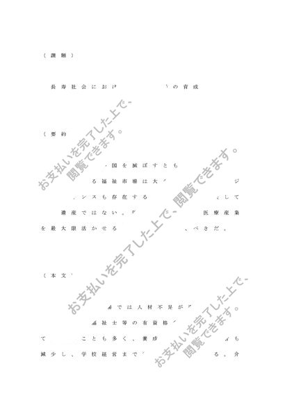 長寿社会での医療・介護市場の育成