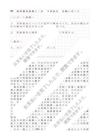 459 初等教育原理Ⅰ・Ⅱ 4単位目 合格レポート
