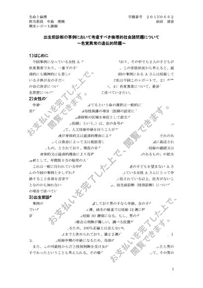 出生前診断の事例において考慮すべき倫理的社会諸問題について