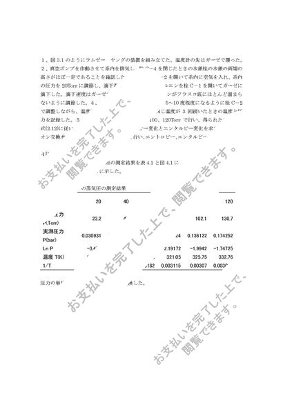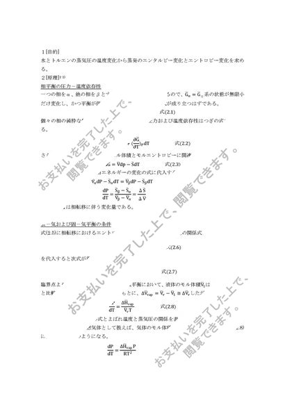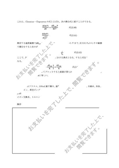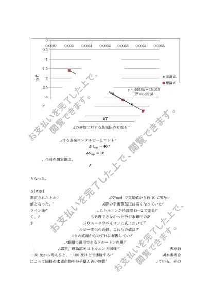 A-1,2(水とトルエンの蒸気圧を測定する。実験によりΔHv, ΔSvを算出する)