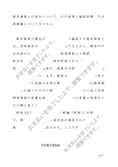 教育課程論 第一設題 A評価