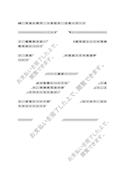 458児童心理学1単位目word版合格レポート