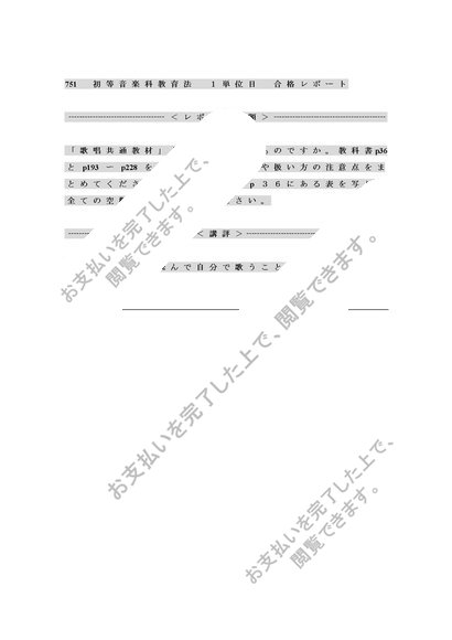 751初等音楽科教育法1単位目word版合格レポート