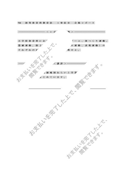 753初等体育科教育法1単位目word版合格レポート