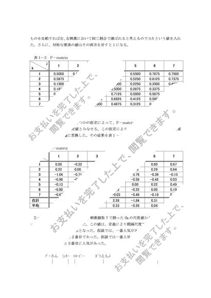 一対比較法による心理尺度構成(キャラクターの人気測定)